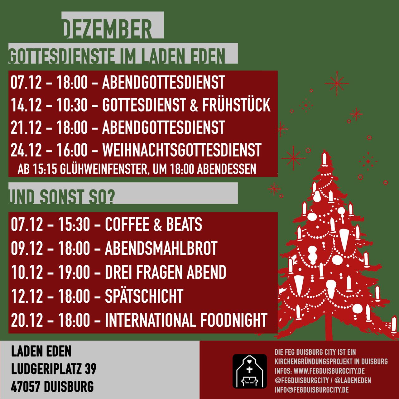 Veranstaltungsübersicht 12.25 Hier findest du unsere Monatsübersicht für unsere Termine im Dezember 2025! + Zu Google Kalender hinzufügen + iCal / Outlook export Datum Dez. 01 - 31 2025 Läuft aktuell… Uhrzeit 8:00 - 18:00 Teile diese Veranstaltung